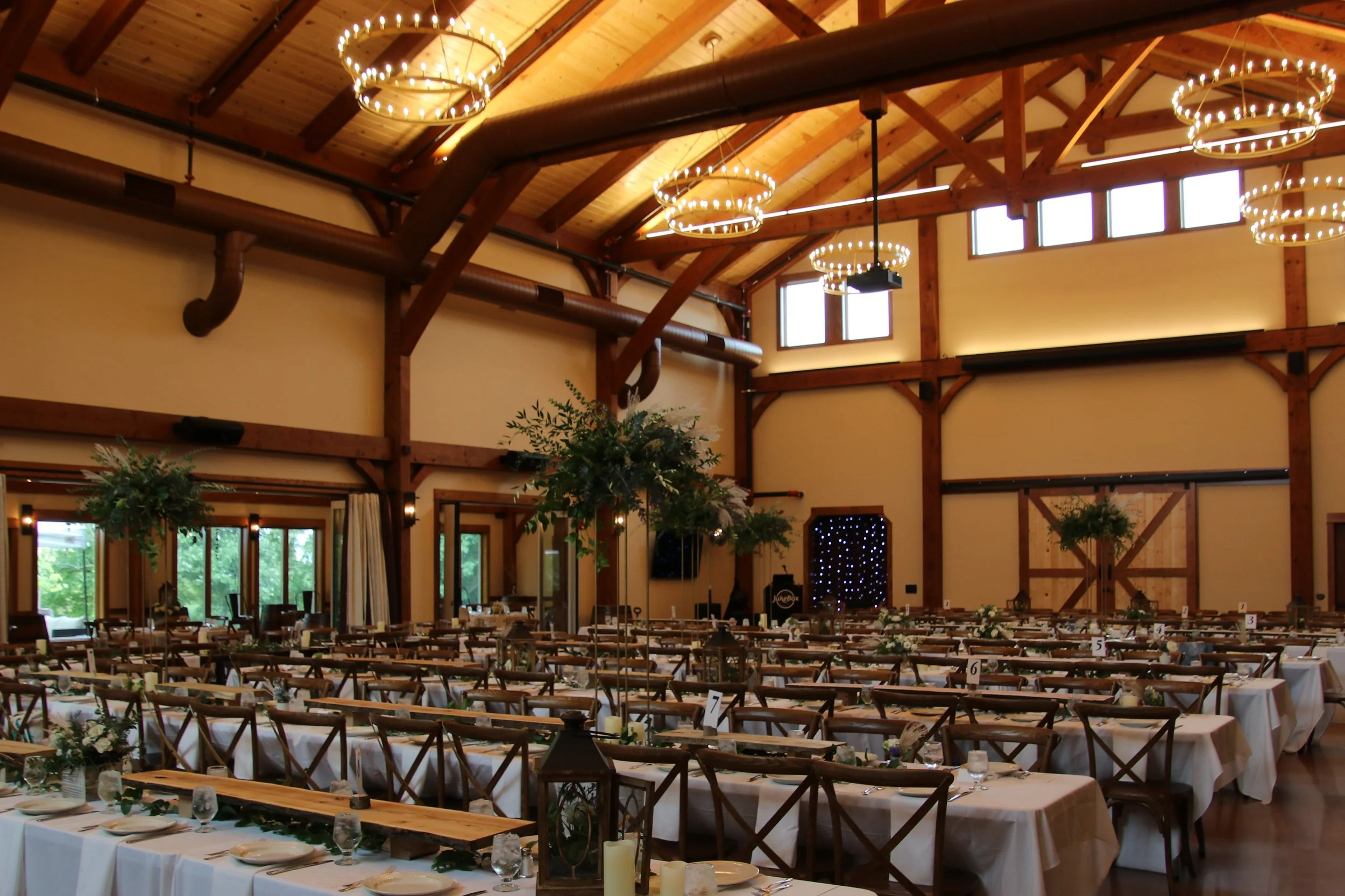 Barnwood Event’s new premier wedding barn venue and unique wooded landscape just minutes from downtown Madison provides a picturesque background for your special day. In addition the 30 foot high timber framed modern barn, the 8 acre landscape adjacent to the Capital City Bike Trail will allow you to find the perfect spot for the wedding of your dreams. The property also has walking trails, mature trees, water features, lawn games and a fire pit to keep your guests entertained outdoors and indoors.