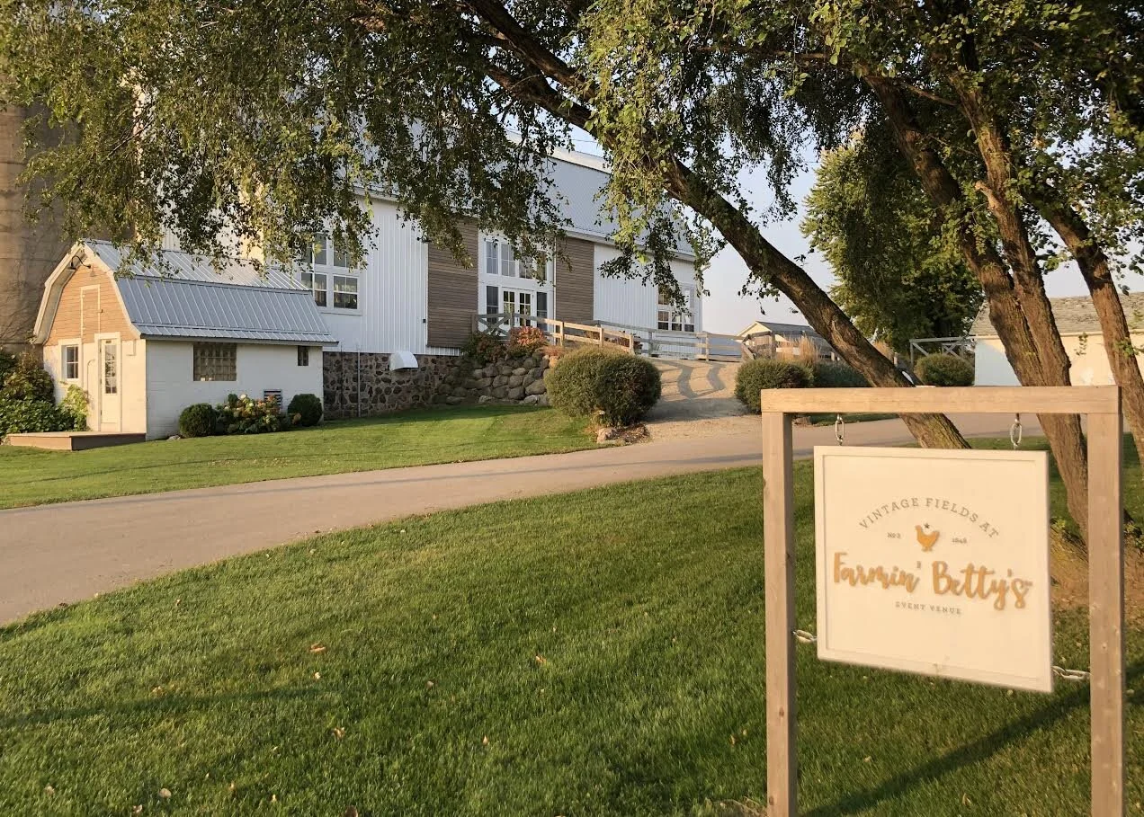 The main barn is breathtaking with its vaulted ceilings, rustic exposed barn beams and warm lighting. The Carriage House with bridal suite & guest areas is calm oasis with a modern twist. Our Garden Patio is a charming retreat with café lights streaming overhead. All this, flanked by acres of peaceful, scenic fields. Unique and versatile, Vintage Fields at Farmin’ Betty’s™ is the ideal venue for your dream wedding, outdoor dinner parties, receptions and ceremonies.